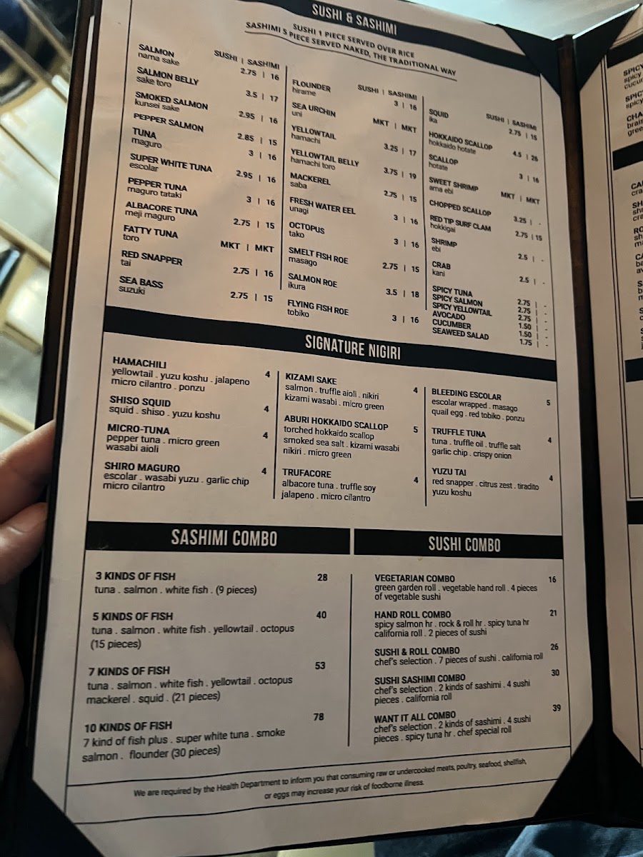 Escolar, wasabi yuzu, garlic chip micro cilantro.