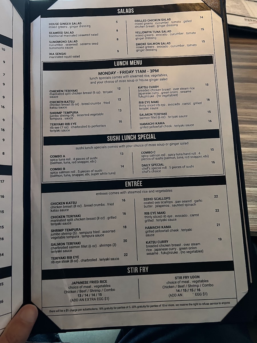 Patrons rave about the attentive service and the welcoming atmosphere. The happy hour—running from 3-7 PM and all day Sunday—offers fantastic value, with options like Gyoza and refreshing drinks, including the Mikata citrus ale and expertly mixed martinis. Families will appreciate the beautiful aquarium that adds charm to the dining experience.
